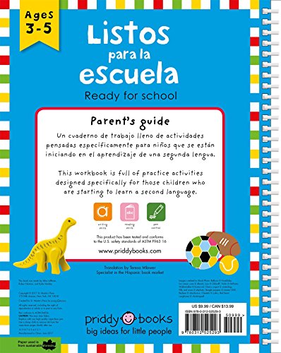 Details: Product Description With content designed specifically for children preparing to start school, this wipe-clean bilingual workbook from Roger Priddy is packed with first learning activities to complete and repeat.Tracing and problem-solving activities are presented in both English and Spanish to encourage your child to practice and hone both their early-learning and language skills. The wipe-clean element is perfect for revision and the bright photographic images will appeal to young children.This workbook is ideal for those just beginning to learn a second language.Also available: Bilingual Workbook: First Grade Review “Priddy Books are ..."visually delightful with an interactive element." - School Library Journal About the Author Roger Priddy's passion for educating children through fun, informative and engaging books has led him to create some of publishing's most enduring and successful nonfiction early learning books. Bestselling titles include First 100 Words, Bright Baby Animals, and Alphaprints: ABC. Roger lives in London and has three children, who have been the inspiration behind many of his best publishing ideas.